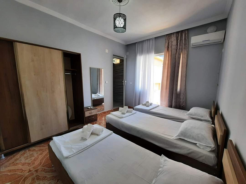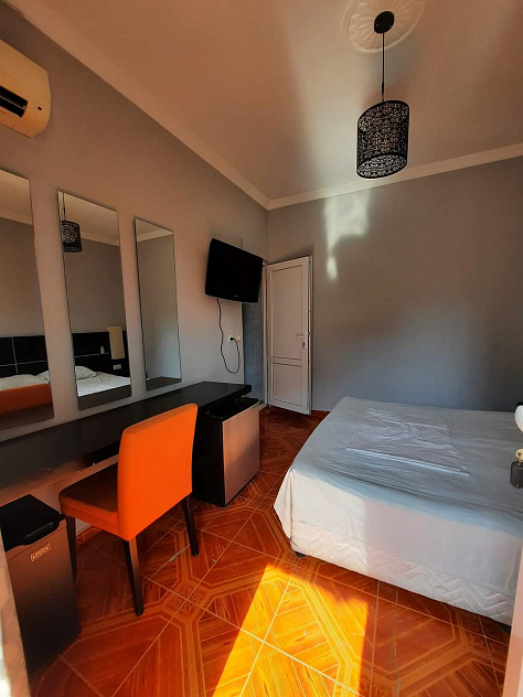 Номера оборудованы всем необходимым: фен, кондиционер, телевизор, шкаф, тумбочки, с/у в номере.