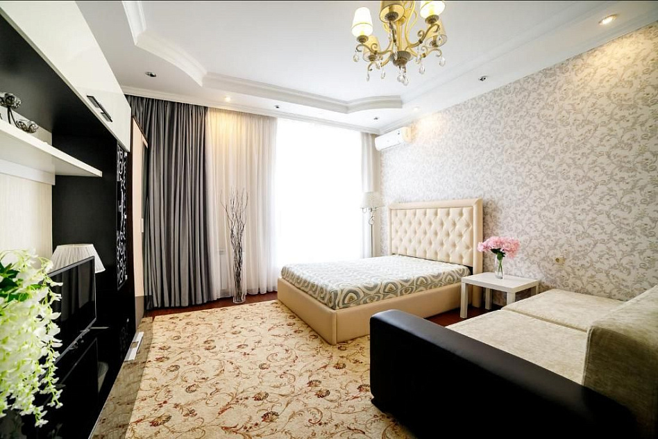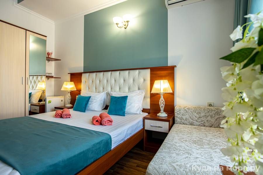 Душ и туалет в номере, Кондиционер, Телевизор, Холодильник.Размещение - 1 диван — кровать и 1 большая двуспальная кровать . до 5 персон — 1 детская кроватка по запросу.